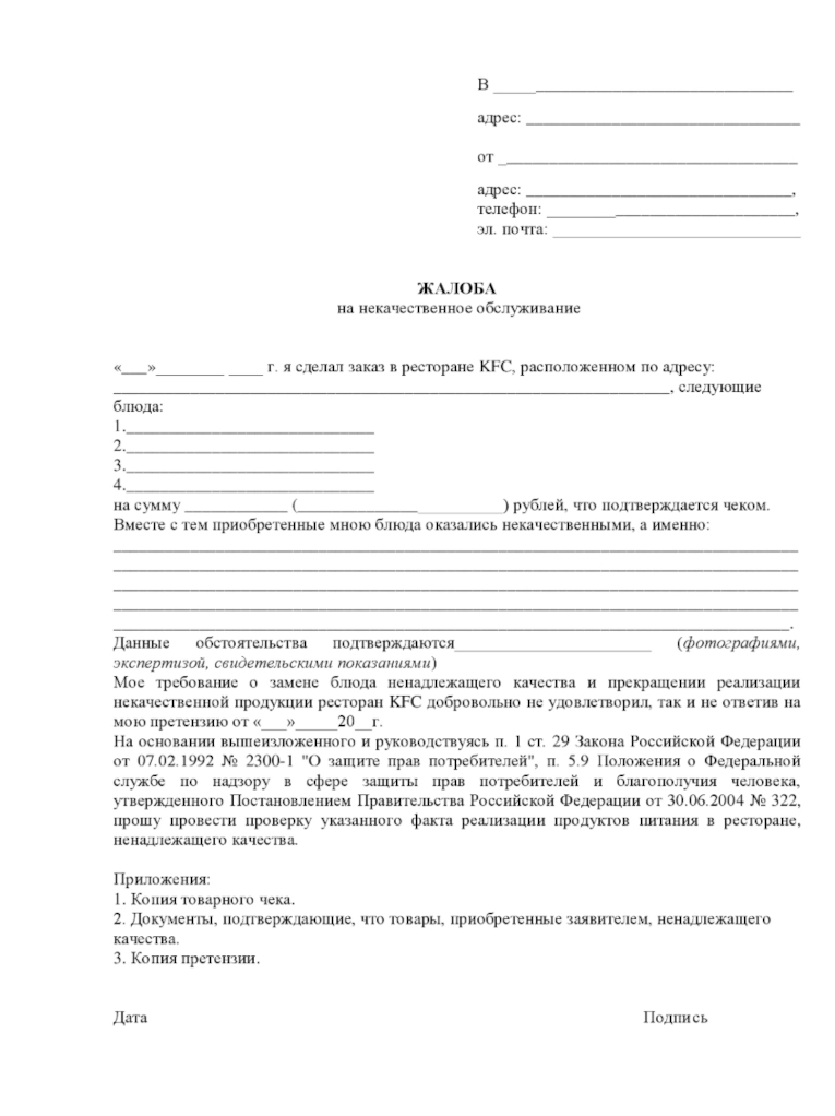 При составлении жалобы в Роспотребнадзор рекомендуется указать дату и время посещения, адрес заведения, фамилии сотрудников (если известны), конкретные нарушения и ссылку на доказательства: фото, чек, счёт, видео. Документ должен быть понятным и логичным. Чем чётче изложена информация, тем быстрее будет проведена проверка.